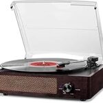 Tocadiscos de vinilo con receptor Bluetooth incorporado y 2 altavoces estéreo, tocadiscos retro portátil de 3 velocidades y 3 tamaños para el entretenimiento y la decoración del hogar